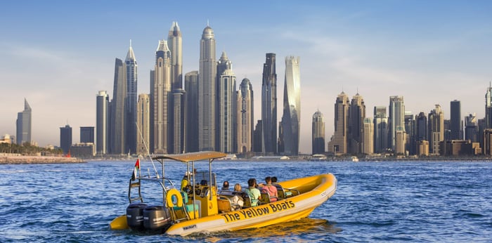 You can head out to begin your journey from the Dubai Marina which is a 60-minute boat ride- the glorious Dubai skyline will reveal itself to you like you are living up to a fantasy. The incredible architectural map of the city and the metropolitan site decked out in all its showy. If you want to enhance your trip more than taking a ride during the night will just make you feel magical and awe-struck when the city glows and shine multi-colored in middle of the night –this is without a doubt most mesmerizing view you will ever experience. It doesn’t end here- You can extend it to 90-minute yellow ride as well from Dubai marina head to Palm Jumeirah .the most stunning sight to experience await you- the Burj-al-Arab ear-rending the Dubai sky is a spectacular view to gaze upon. And you cannot take your eyes off from the sight of Atlantis which is just enhancing the beauty of palm Jumeirah.isnt all this just sound incredibly astonishing? So don’t miss this opportunity and check out the exclusive deals we got just for you! This yellow boat ride is a unique way to experience the true essence of Dubai- whether you choose to ride boat under the blanket of stars or under a full blare of the sun- the experience will leave you fascinated. Your trip to Dubai is incomplete without riding a yellow boat over the deep extensive water of the gulf. And there are rides available according to each one's preference and for different age groups. This is just a perfect place for family entertainment or some couple time- to corporate socializing for a good break from your hectic schedule!